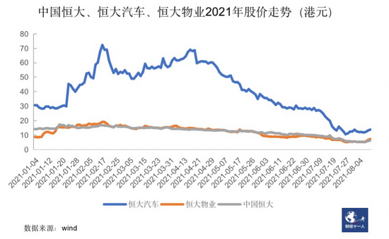 2021年初,中国恒大和恒大物业的市值都突破过2000亿港元,恒大汽车市值更是接近过7000亿港元,但到8月初已跌至700亿港元、550亿港元和1300亿港元左右,合计蒸发市值逾8000亿港元。曾经的利润之王恒大,今年成为市场最为瞩目的风险对象。