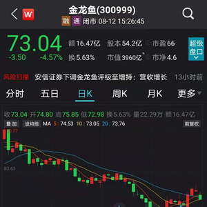 受上半年净利润下降影响,金龙鱼股价大幅走低。