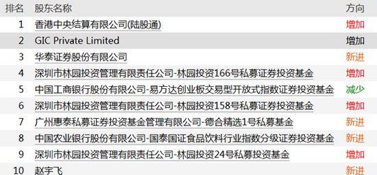 其中,香港中央结算有限公司持股数量较一季度末增加477.4万股;GIC在一季度减持后,于二季度加仓30.6万股;林园投资166号、158号、24号分别增加2万股、3万股、5万股、合计加仓10万股。