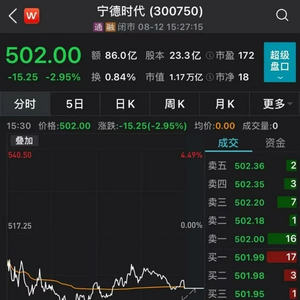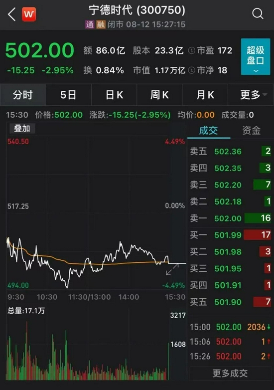Wind数据显示,截至8月12日,宁德时代股价报收502元,市值达1.17万亿元,今年以来股价涨逾40%。