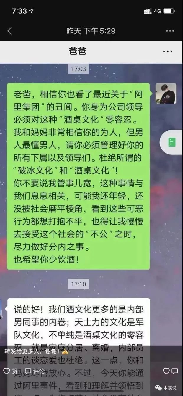 从截图来看,父子俩就酒桌文化经过了一番热情的讨论,“老爸”祁云贵很给面子的说道: