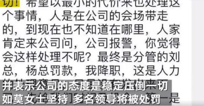 其直属领导李某以会被连带处罚和公司将受影响的理由,希望她撤案。李某甚至在未经莫女士同意的情况下,擅自将她的手机号给到龙某的家属。