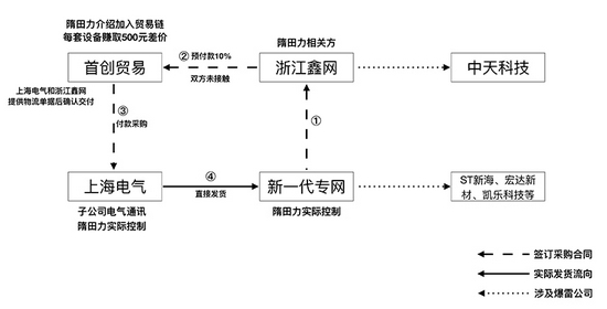 首创贸易提交的证据显示,其上游是上海电气一方,首创贸易从前者采购货物并由上海电气直接发货和交付。首创贸易的下游是浙江鑫网,浙江鑫网的下游是新一代专网,新一代专网是与隋田力关系密切的公司。