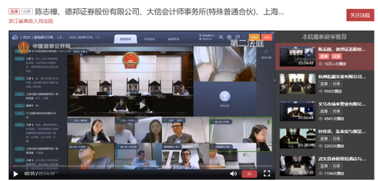 8月17日,“五洋债”案在浙江省高级人民法院开庭,此次庭审采用线上直播形式,上诉人与被上诉人的代理人共14人出庭,庭审时间从上午9点开始,到下午6点多结束。