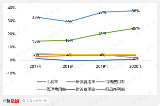 回到开头,什么是中旗新材盈利能力改善的核心原因呢?答案是毛利率的持续上升,如下图,2019年和2020年毛利率比2018年多出近10个百分点。