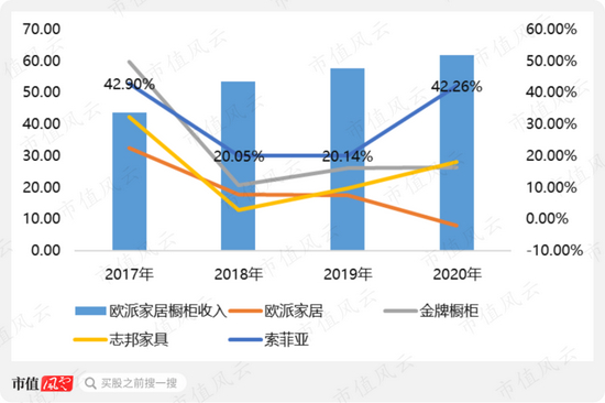 而过去5年,索菲亚的定制橱柜及配件业务在所有同行中增速最快,关于公司是否在缓慢失去索菲亚这一关键客户,中旗新材未做明确披露。
