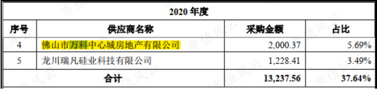2020年,佛山市万科中心城房地产有限公司还是中旗新材前5大供应商,中旗新材当年对其采购额为2,000.37万元。