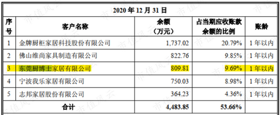 2020年,东莞厨博士从中旗新材采购金额未知,在2020年底尚有809.81万元货款未支付,账期为90天。