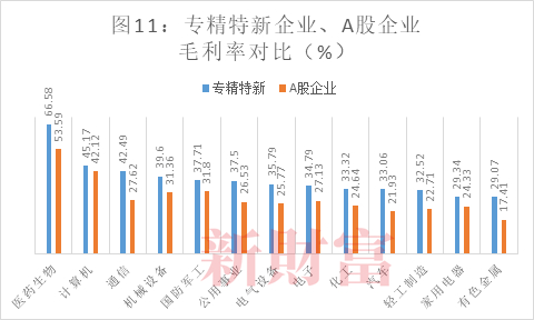 如果以行业毛利率进行对比,可以发现,同一行业的专精特新上市公司全面超过A股,显示其含金量不低。