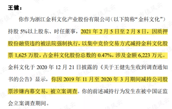 2021年3月29日,公司公告王健因减持涉嫌内幕交易,被证监会立案调查。