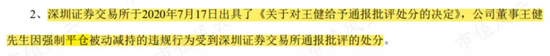 除此之外,早在2020年7月,王健就因强制平仓被动减持也受到深交所的通报批评。