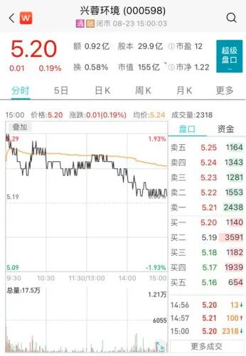 根据最新股价,兴蓉环境目前的市值为155亿元。