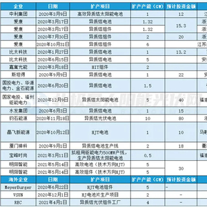 HJT规划/扩产线 资料来源:北极星太阳能光伏网
