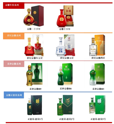 按照金徽酒的划分,高档酒包含100元以上的产品,主要代表有金徽十八年、世纪金徽五星、柔和金徽系列、金徽正能量系列等;中档产品包含30 元至 100 元的产品,主要代表有世纪金徽三星、世纪金徽四星等;低档产品包含 30 元以下的产品,主要代表有世纪金徽二星、金徽陈酿等。