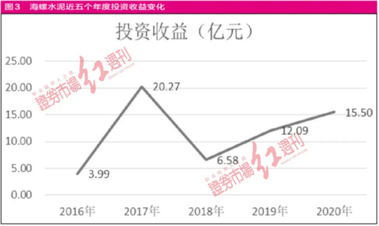 但过往的投资记录显示,海螺水泥的投资收益变化非常大,最高时可达20亿元,最低时仅为4亿元左右(见图3)。