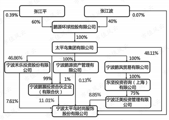 当时由于徐翔的反击,收购并未成功,太平鸟最终改以战略投资的方式入股宁波中百。截至2021年一季报,太平鸟集团旗下的宁波鹏渤和宁波鹏源分别持有宁波中百5.65%和1.89%的股份。