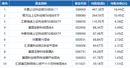 据2021年二季度基金十大重仓股数据,持有金山办公最多的十大基金如下: