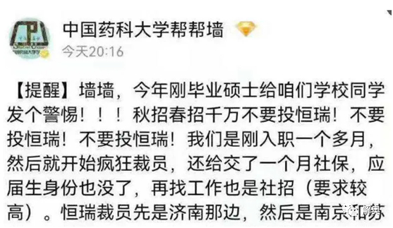 业绩停步不前之时,恒瑞医药传出大幅裁员的消息。
