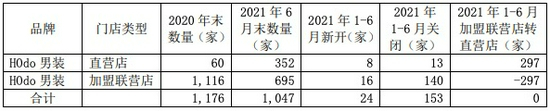 实体门店数量方面,直营店2021年6月末数量为352家,其中新开8家,关闭13家,加盟转直营297家;加盟联营店021年6月末数量为695家,其中新开16家,关闭140家。实体店,上半年合计新开24家,关闭153家。