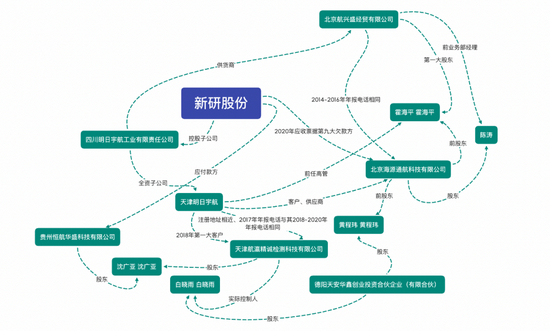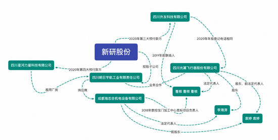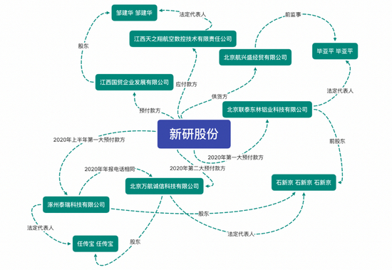 比如,明日宇航子公司前高管曾是新研股份主要客户的股东和监事;两家预付款方的核心人物重合,且有受访对象透露预付款方租用明日宇航厂房;多个供应商的股东一致或重名,但新研股份并未披露其中的同一控制关系……