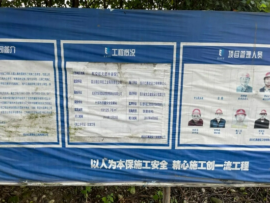 但记者到达“航空航天零部件特种工艺车间”项目正大门,该处大门紧闭,门内已经杂草丛生,未有建筑物痕迹和完工痕迹。而旁边围挡上却显示是“航空航天部件装配厂”项目,上面显示的开工时间是2016年12月20日,竣工时间是2017年4月20日。