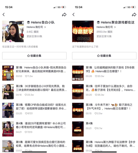 根据海伦司招股说明书显示,截至2021年3月,海伦司官方微信、抖音和微博账号累计粉丝超过570万。为进一步迎合年轻人的社交文化,在抖音平台开辟了“Helens告白小队”和“Helens聚会游戏都在这”两个板块,以时下流行的情感小短剧来凸显其社交属性。截至2021年9月4日,“Helens告白小队”在抖音累计播放量已超2.6亿。
