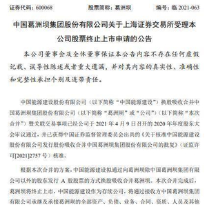 公告显示,合并完成后,葛洲坝将终止上市,中国能源建设作为存续公司,将通过接收方葛洲坝集团承继及承接葛洲坝的全部资产、负债、业务、合同、资质、人员及其他一切权利与义务,葛洲坝最终将注销法人资格。