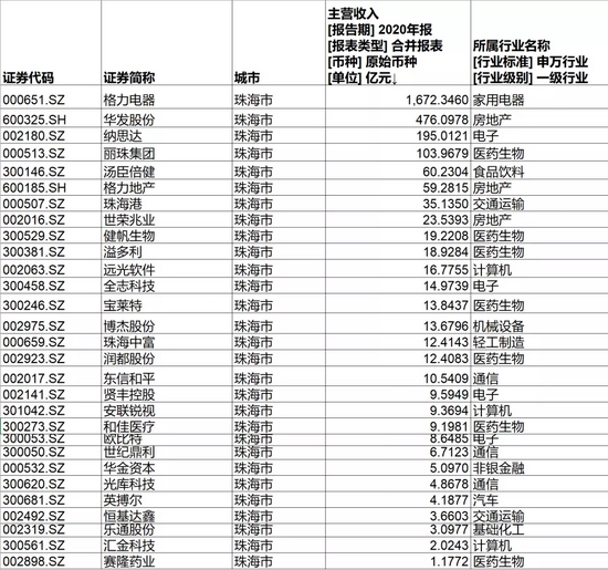 A股方面,珠海共有29家上市公司,2020年营收超百亿的有四家:格力电器、华发股份、纳思达、丽珠集团。