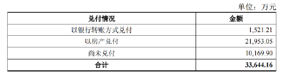 已兑付金额中恒大以银行转账付款1521万元,2.19亿元用房产抵债。