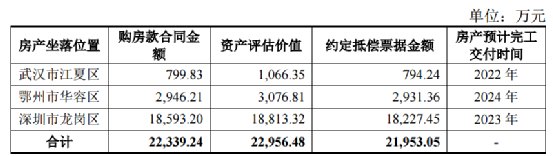 这2个多亿货值的房产,分别位于武汉、鄂州和深圳等地,均为期房,约定交房时间从2022年至2024年不等。