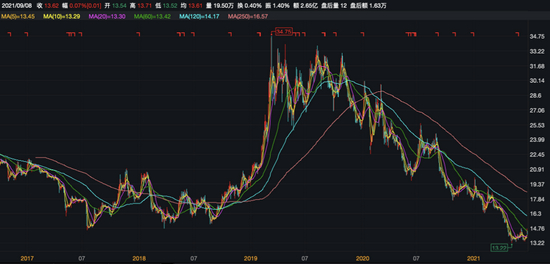 数据显示,温氏股份的股价近两年来持续下跌。2019年3月该公司股价达到高点35.96元/股(前复权),自此之后跌跌不休,2021年7月30日,该公司股价盘中触底12.14元/股。而截至9月8日,温氏股份报收于13.62元/股,股价略有反弹。
