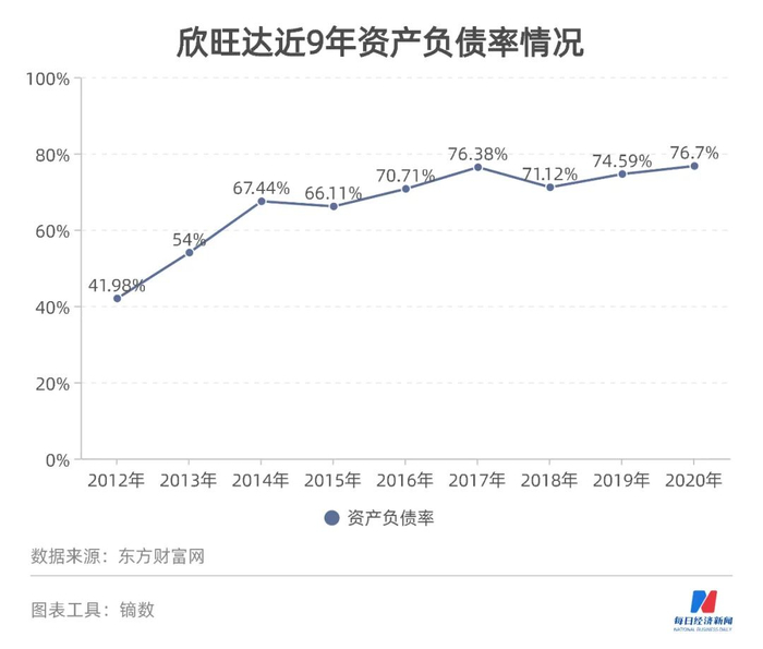 Wind数据显示,自2016年以来,欣旺达各期末资产负债率保持在70%以上,2020年底攀升至76.70%,创上市以来新高。今年6月末为73.15%。