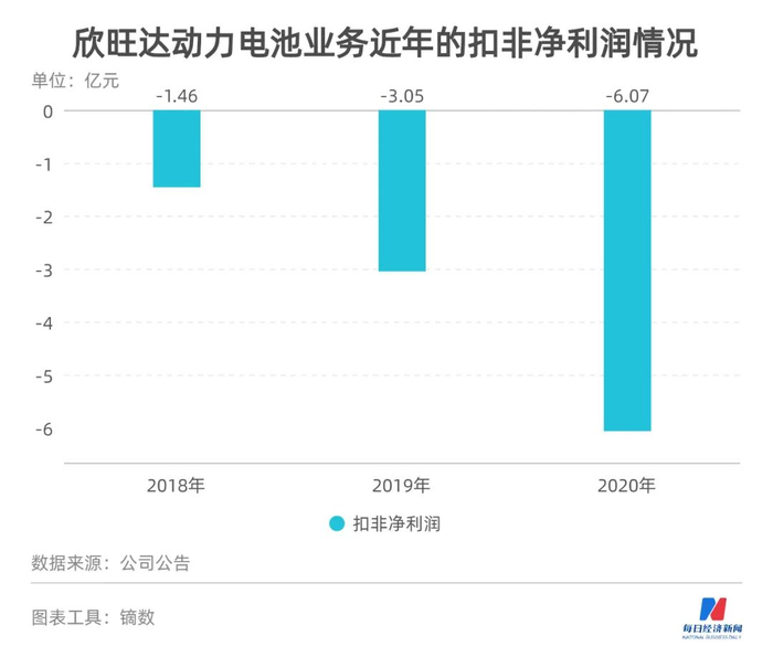 这在欣旺达身上亦有体现。根据其此前对定增问询函的回复,2018年到2020年,公司动力电池业务的扣非净利润分别为-1.46亿元、-3.05亿元和-6.07亿元。