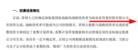 *ST基础公告称,,目前,管理人已经确定海航集团机场板块战略投资者为海南省发展控股有限公司,若投资完成,战略投资者可能成为公司控股股东。