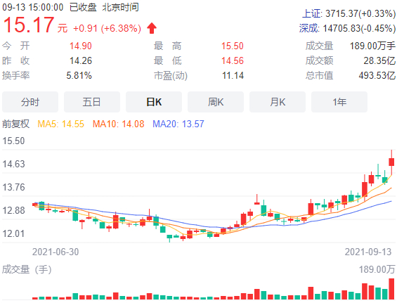 受此消息影响,截至9月13日收盘,浙江龙盛报价15.17元/股,涨幅6.38%,总市值493.53亿元。