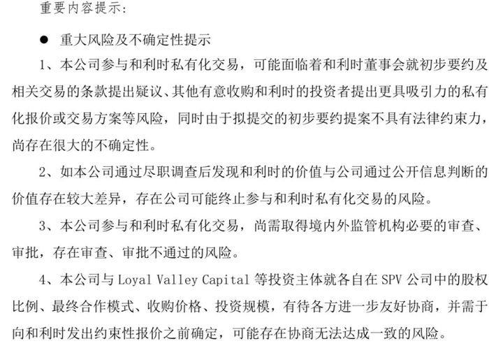 浙江龙盛表示,在SPV公司设立前,由其和Loyal Valley Capital于9月10日共同代表SPV公司向和利时董事会提交初步要约提案,拟定交易价格为每股普通股24美元。