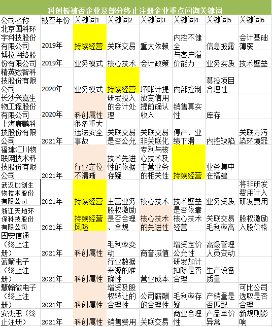 附:科创板上会被否企业及部分终止注册企业问题汇总