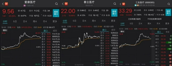 在官宣之前,相关产业链上的上市公司爱康医疗、威高骨科、春立医疗、三友医疗、凯利泰和大博医疗等当天下午股价大幅上涨。
