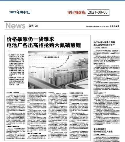 本报在8月初曾深度报道过六氟磷酸锂供不应求、价格持续大涨的情况