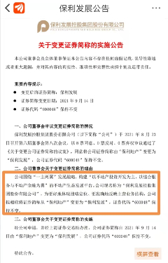9月8日公司公告称,公司围绕“一主两翼”发展战略,构建“以不动产投资开发为主、以综合服务与不动产金融为翼”的不动产生态发展平台,公司现名称为“保利发展控股集团股份有限公司”,为更好地体现战略定位、更准确地反映主营业务结构,公司拟相应将证券简称从“保利地产”变更为“保利发展”,证券代码“600048”保持不变。