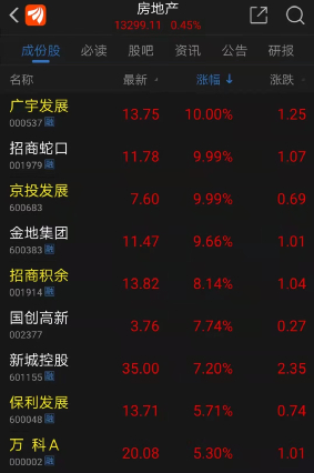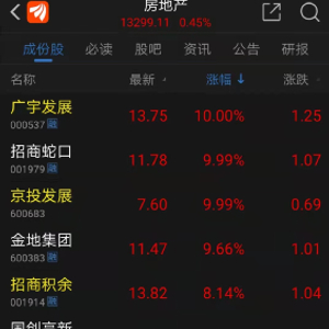 与上述房企股价画风完全不同的是,近期却有小部分地产股走出反弹趋势。保利发展今日又大涨5.7%,8月初至今不到两个月涨幅达到50%;金地集团今日上涨9.33%,8月以来涨幅也近40%;招商蛇口今日更是罕见涨停,8月以来上涨26%;滨江集团8月份以来也上涨了15%。