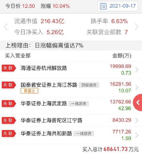 9月17日,广宇发展因日涨幅偏离值达7%登上龙虎榜。在上榜龙虎榜个股中,资金净流入最多的正是广宇发展。数据显示,当日有5.26亿资金抢筹广宇发展。