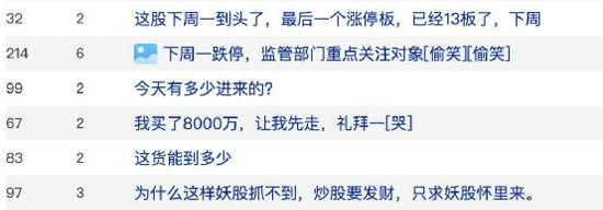消息一出,引起不少股民热议。有些人认为,“这股下周一到头了,今天就是最后一个涨停板了。”“下周一跌停,危险了。”