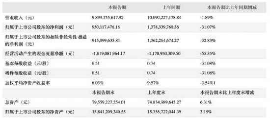 今年上半年,广宇发展实现营业收入99.00亿元,同比下降1.89%;归属于上市公司股东的净利润9.50亿元,同比下降31.07%。基本每股收益0.51元/股,加权平均净资产收益率6.03%。截至2021年6月30日,公司资产总额795.59亿元,负债总额631.51亿元,归属于上市公司股东的净资产158.41亿元,资产负债率79.38%。