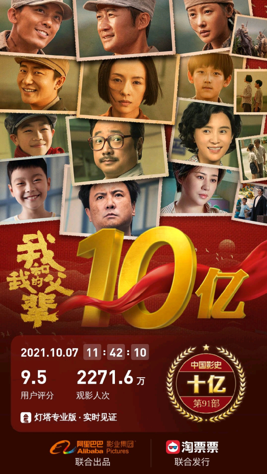 《我和我的父辈》从9月30日上映以来,8天累计票房也突破了10个亿。
