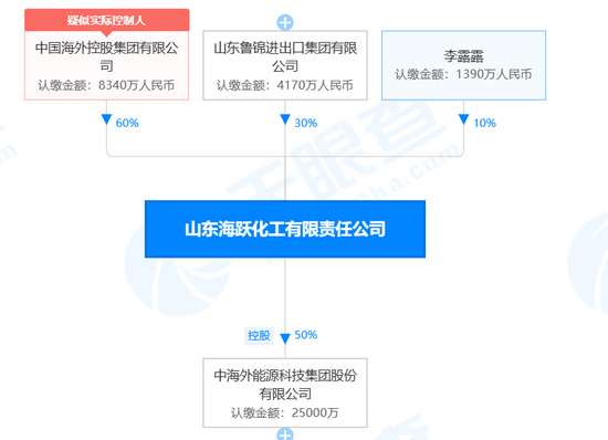 山东海跃目前的股东结构是:第一大股东是中国海外控股集团有限公司(下称“中国海外控股”),认缴8340万元,持股60%;第二大股东是山东鲁锦进出口集团有限公司(下称“山东鲁锦”),持股30%;第三大股东为一名自然人,名为李露露,持股10%。目前,李露露是山东海跃的法人代表。
