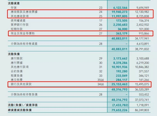 首先是流动性资产的问题。2020年,中国忠旺的应收账款和应收票据为199.4亿元,相比2019年的121.3亿元大幅增长;此外还有200亿元的其他应收款。但彼时,中国忠旺的主要产品的销售额正在大幅下滑。