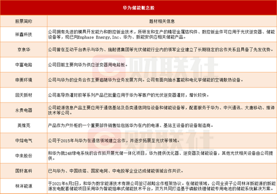 以下为财联社整理的华为储能概念股: