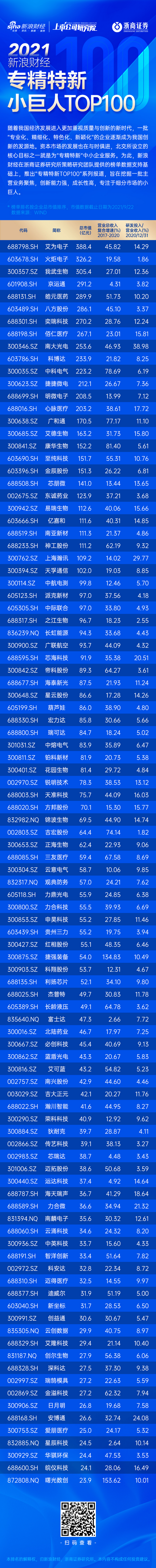 引言:随着我国经济发展进入更加重视质量与创新的新时代,一批“专业化、精细化、特色化、新颖化”的企业逐渐成为我国创新的发源地。资本市场的发展也在与时俱进,北交所设立的核心目标之一就是为“专精特新”中小企业服务。为此,新浪财经推出“专精特新TOP100”系列报道,旨在挖掘一批主营业务聚焦,创新能力强,成长性高,专注于细分市场的小巨人。