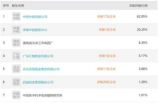 工商登记资料显示,目前,国药药材的大股东为中国中药有限公司,其持股比例为62.05%。